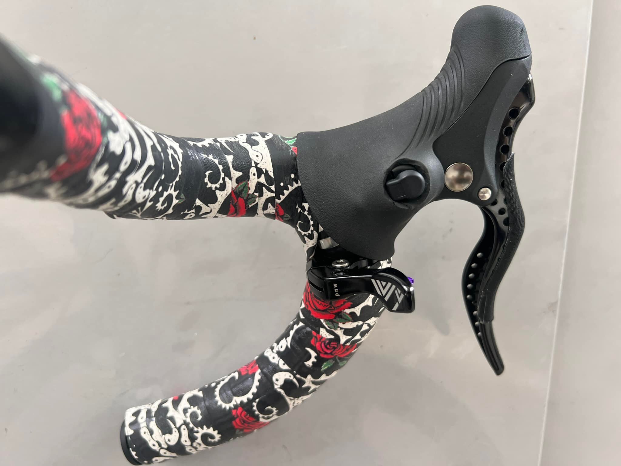 TRPの機械式のシングルレバーのブラケットゴムの中にDi2のリモートスイッチを挿入したのでした。