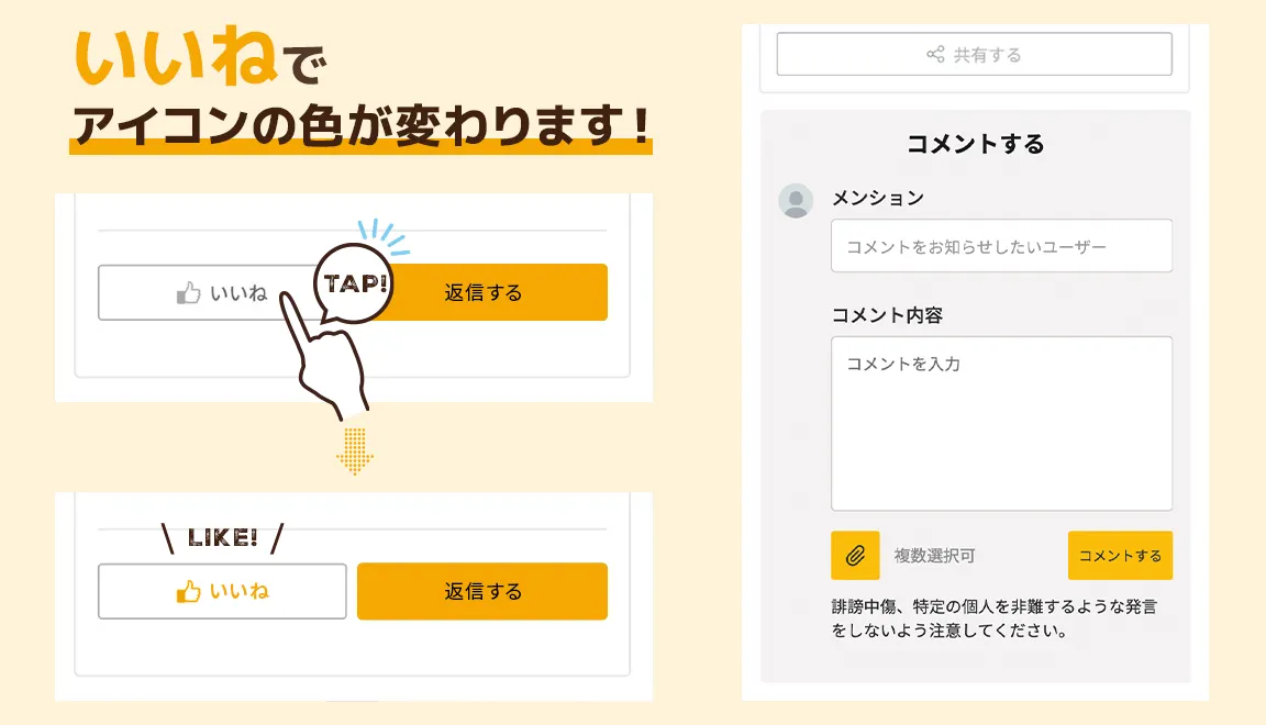 Step2. 投稿に “いいね”&コメントをしてみよう!
