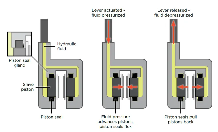 ブレーキレバーを握ると、片側のピストンが安全に突出する