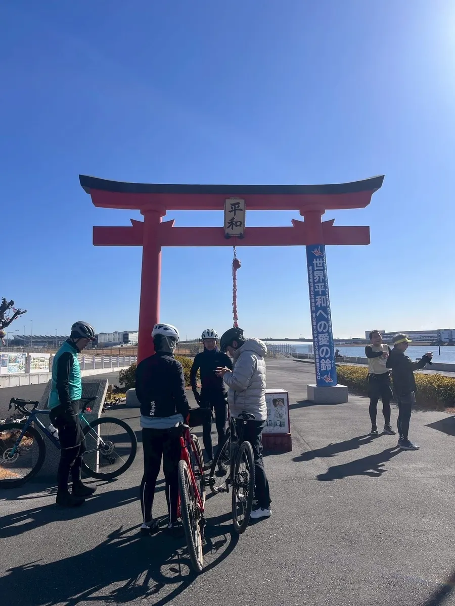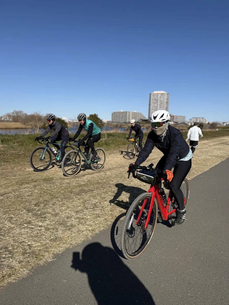 その後、多摩川グラベルルートを一緒に走り、羽田空港までライドしました。