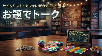 サイクリスト・カフェ「お題でトーク」新登場。 サイクリスト・カフェは、ただ休憩するだけの場所から、アイデアと情熱が交差する「ディスカッションの場」へ。「お題でトーク」は、コミュニティの質を高めるための新しいコミュニケーション・ツールです。投稿はコチラから↓↓↓お題でトーク 第一弾! コンビニ派? or カフェ・ご当地グルメ派?